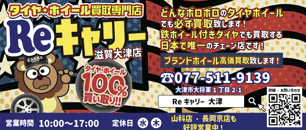 Reキャリー 滋賀大津店タイヤ・ホイール100%買取り!! 詳しくはポップリードをCheck!...詳しく見る